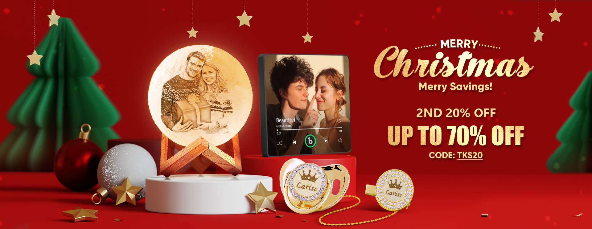 Personalized Photo Name Christmas Tree Mirror Lights Couple Gift -