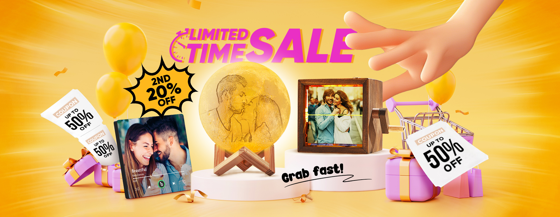Customised 3D Photo Moon Lamp Valentine's Day Gift Engraved Luna Lamp Perfect Gift For Couples -