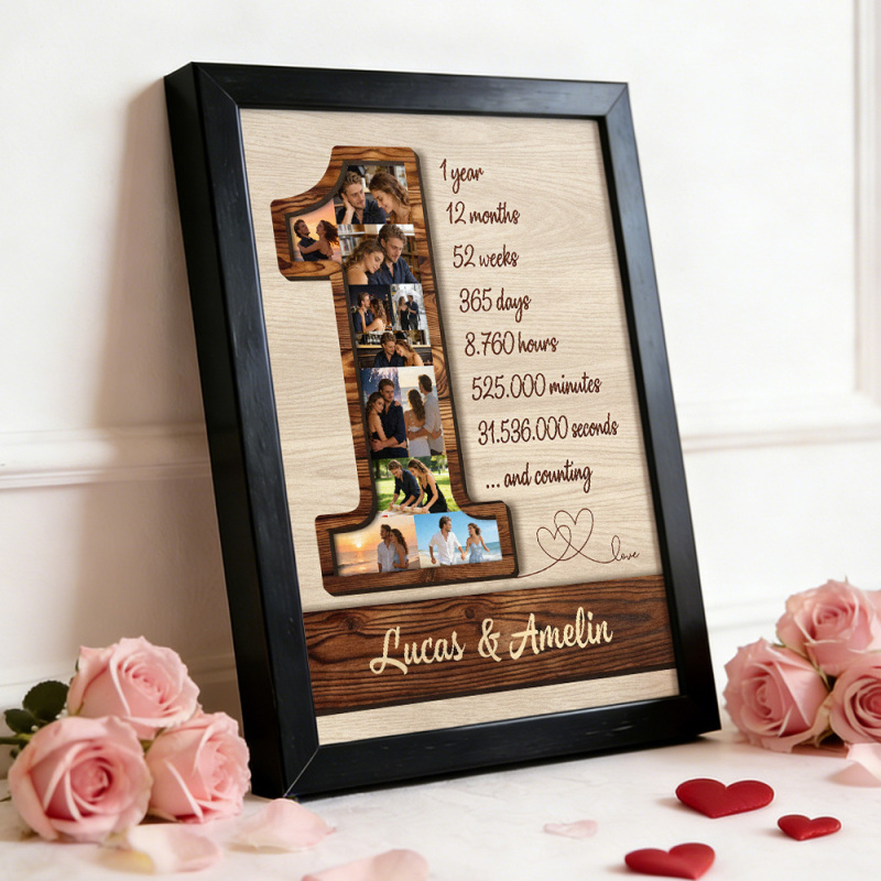 1st Anniversary Custom Photo Collage Frame One Year of Love Memory Display Decor Gift for Birthdays Anniversary