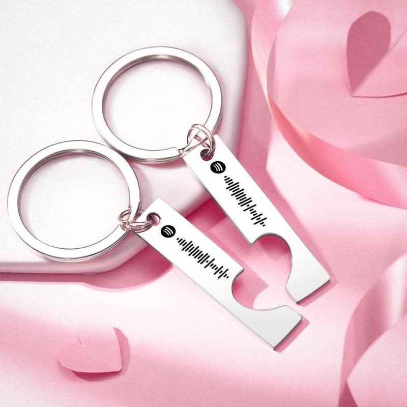 Valentine's Day Gifts Custom Spotify Code Keychain Heart Shaped Couple Keychain Gifts for Love - Silver