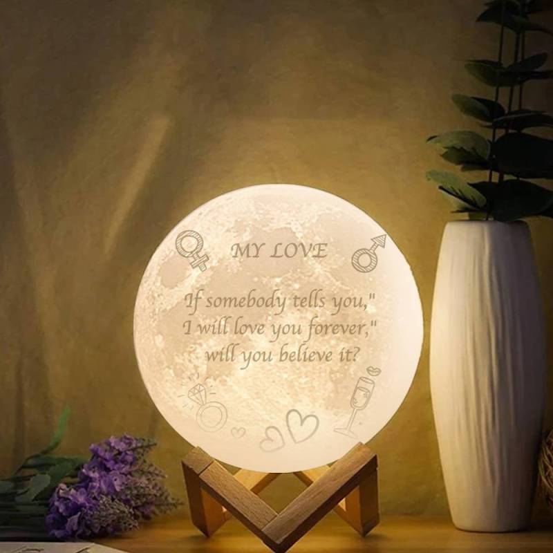 3D Moon Lamp for Girlfriend, Engraved Moon Lamp - Touch Two Colors 15cm-20cm Available