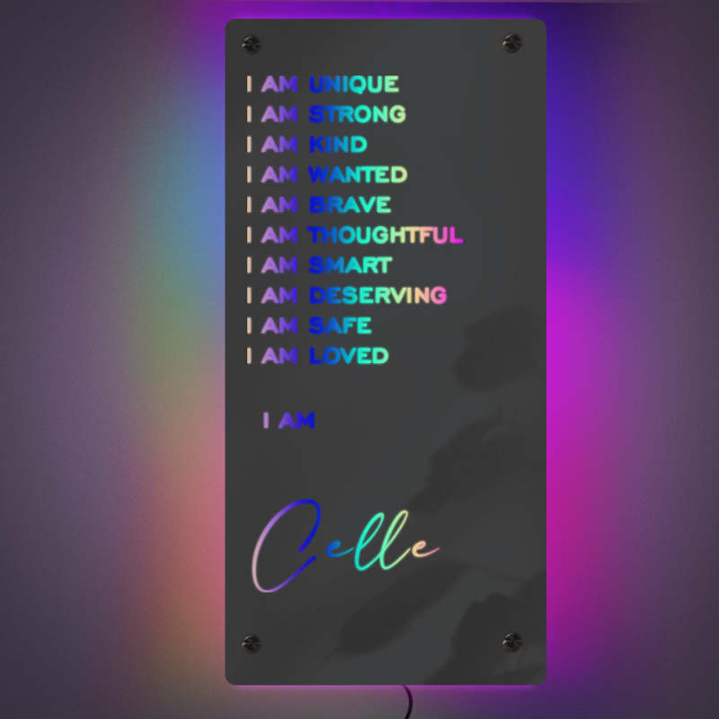 Custom Affirmations Mirror - I Am Mirror Light Colorful Bedroom Lamp Gift For Girlfriend