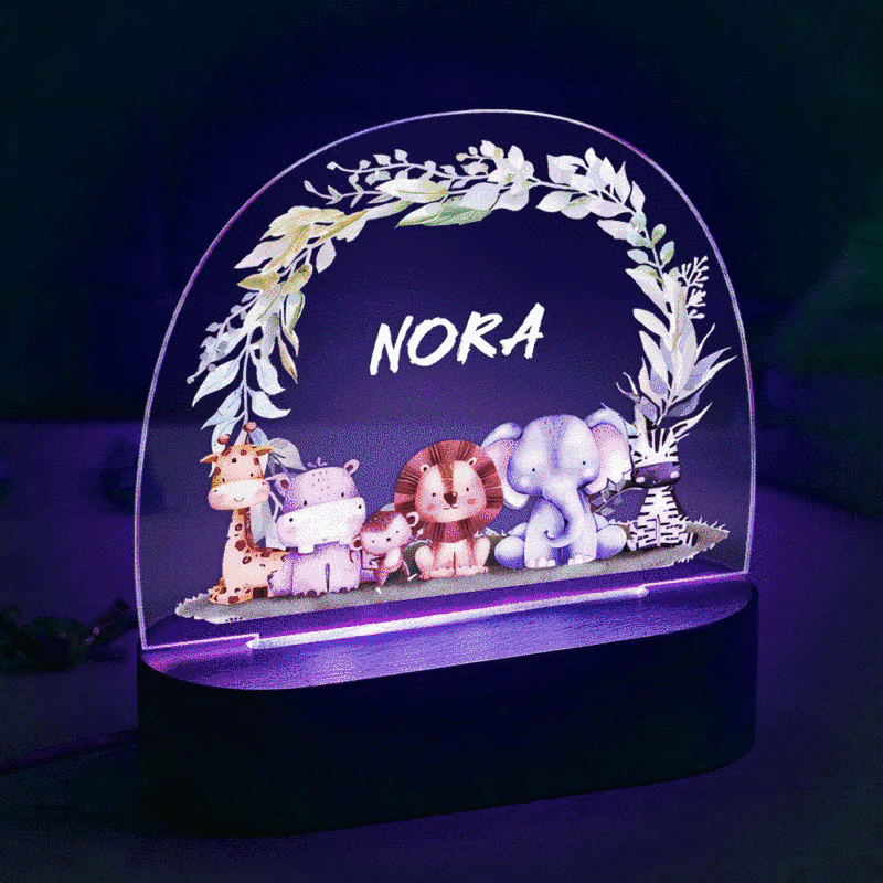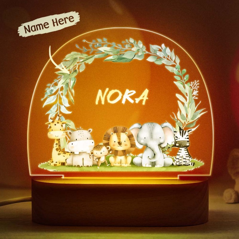 Children's Room Night Light Lion And Elephant With Custom Animal Name Lamp