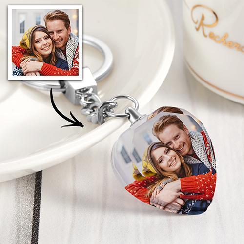 Custom Photo Keyring Crystal Heart