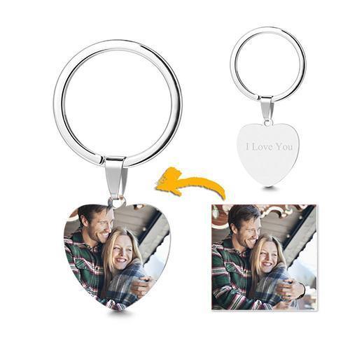Heart Tag Photo Keyring With Engraving Stainless Steel