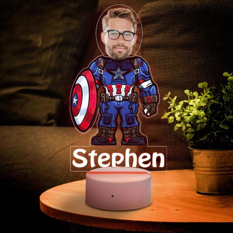 Personalised Captain America Night Light Children's Lights Kids Bedrooms Captain America Lamp