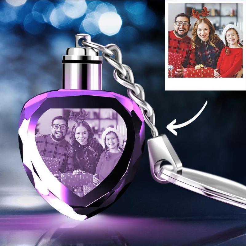 Father's Day Gifts Custom Crystal Heart Shape Photo Keychain
