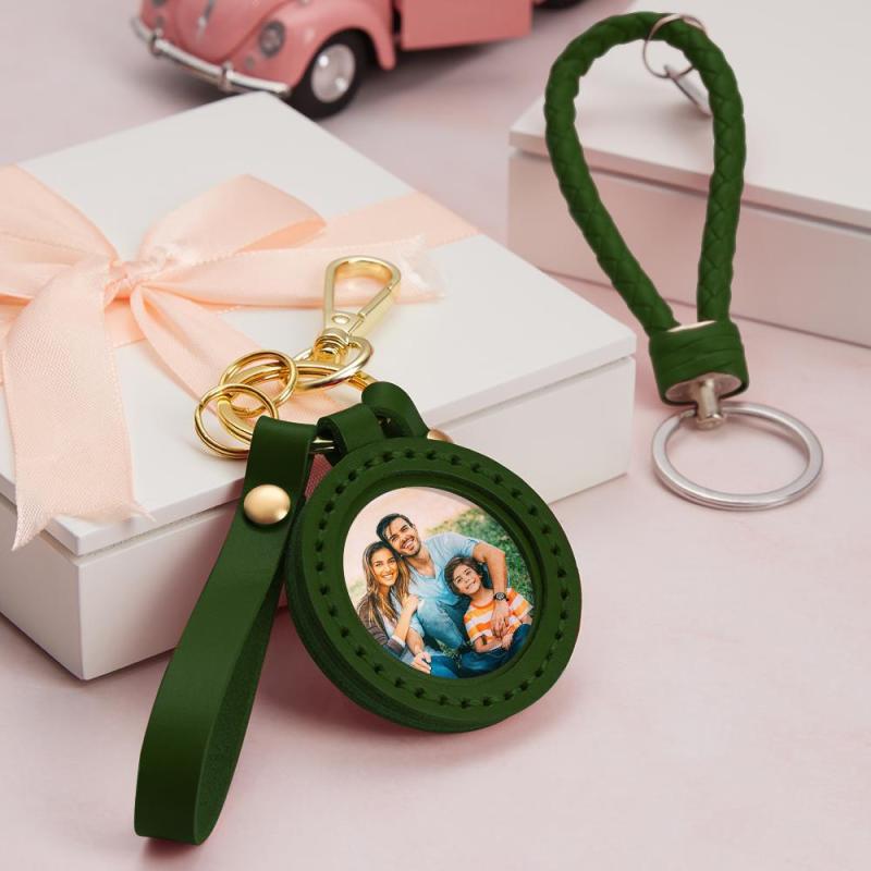 Custom Photo Keychain Personalised Multicolor Photo Leather Keyring Gifts for Family