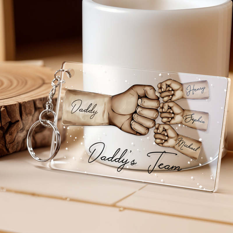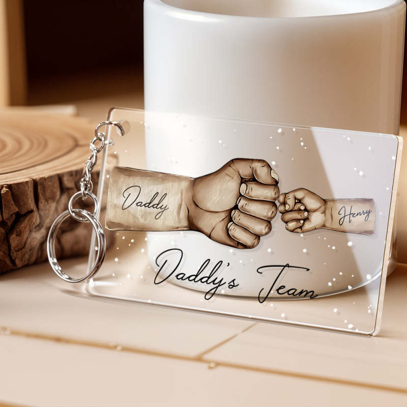 Custom Acrylic Keychain Personalised Daddy's Team Fist Bump Father's Day Gifts