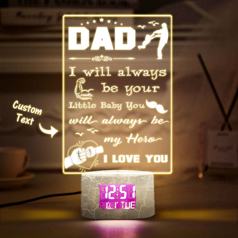 Custom Alarm Clock Night Light To Dad Personalized Name Sign- From Daughter - You'll Always Be My Hero