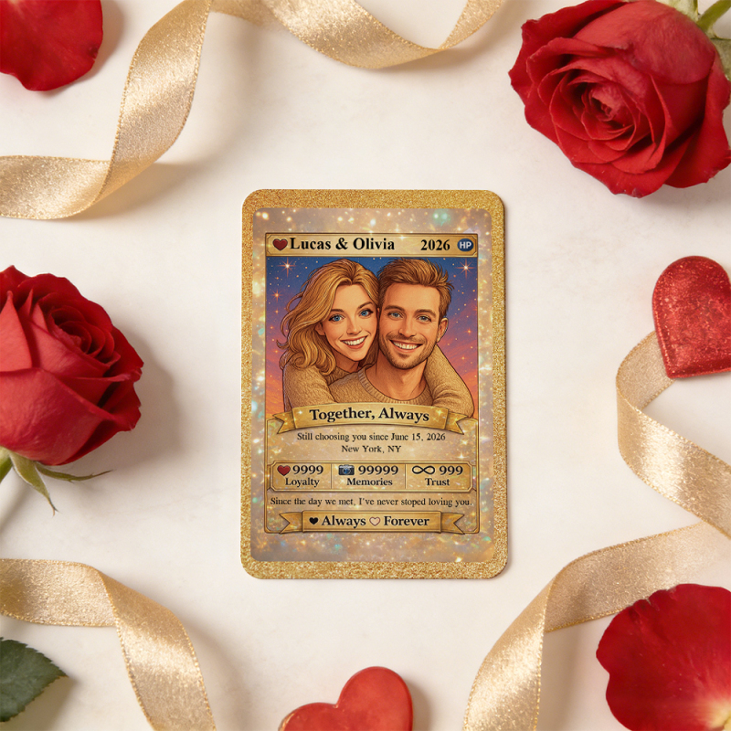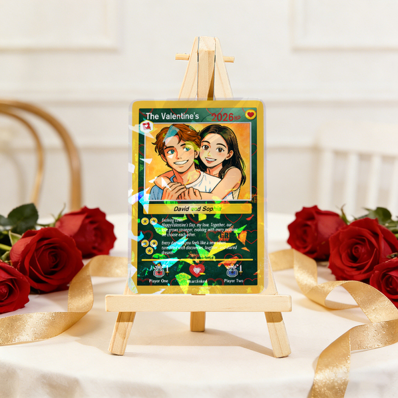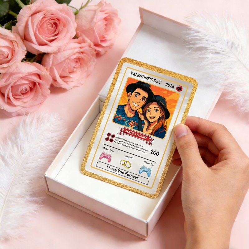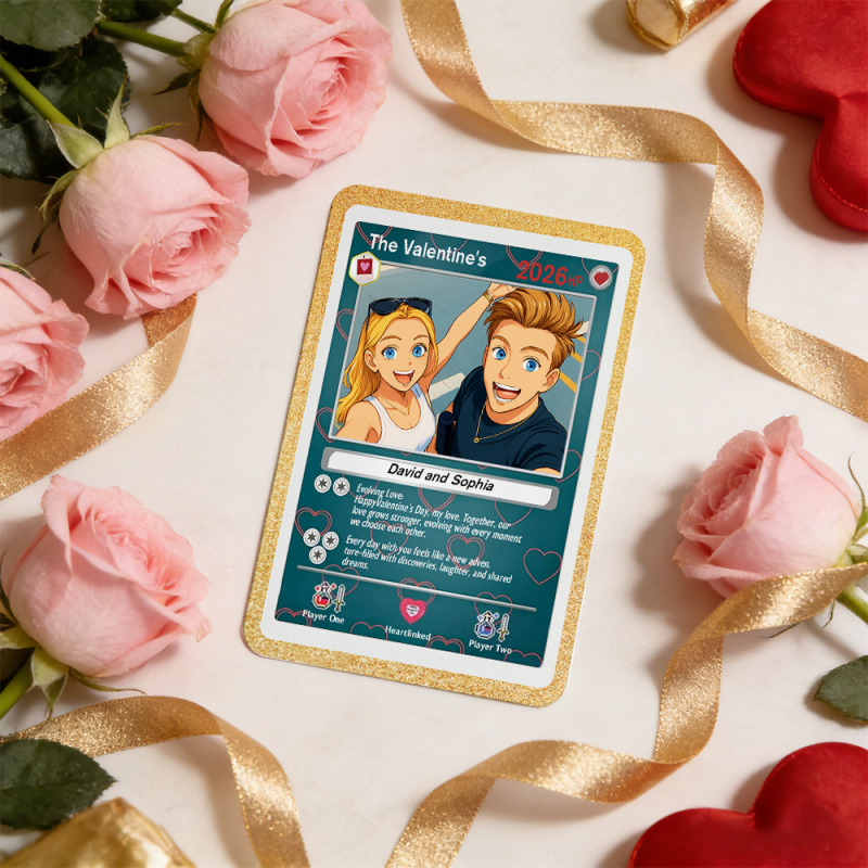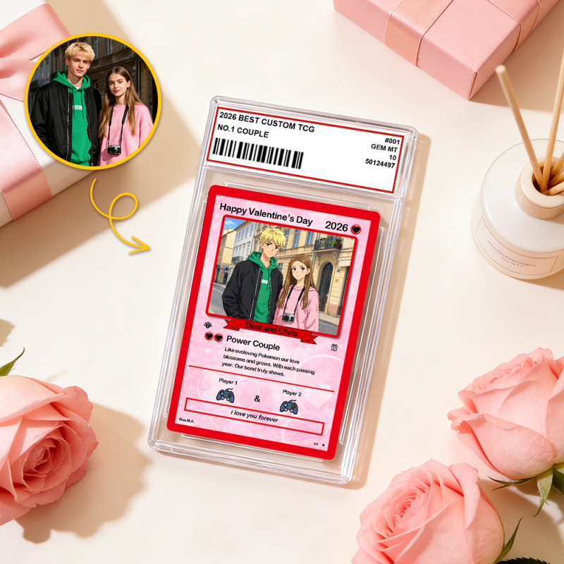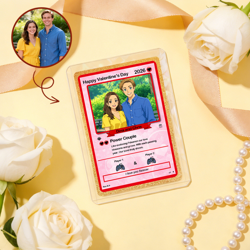 Personalized Valentine's Day Power Couple Card, Custom Anniversary Card Couple Photo Anime Style, Best Valentine's Day Gift for Lover