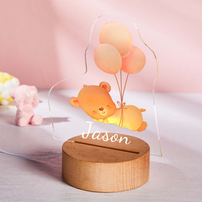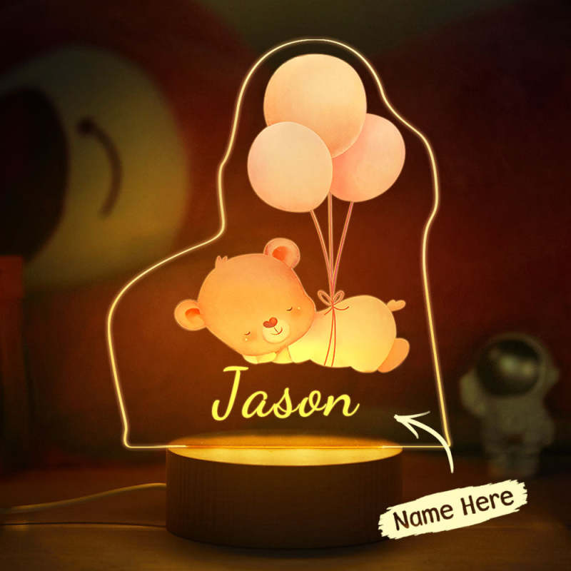 Custom Baby Night Light Sleeping Bear Personalized Name For Kids Baby Shower