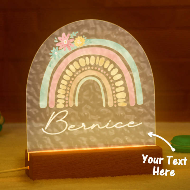 Custom Boho Rainbow Water Ripple Night Light with Flowers for Kids Cute Birthday Gift the Decoration of the Bedroom