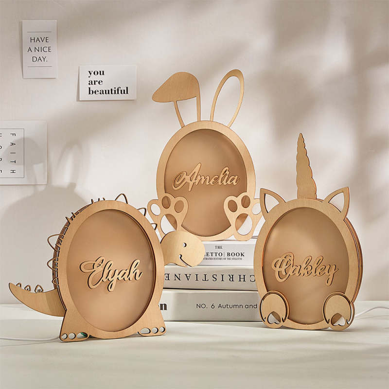 Custom Bunny Dino Engraved Light Night Cartoon Movable Home Gifts