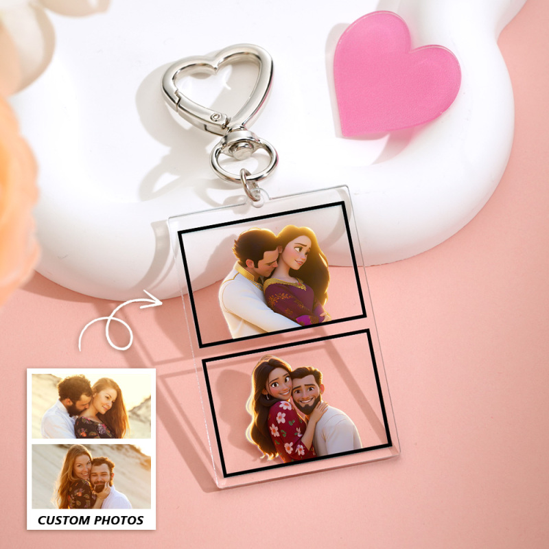 Custom Cartoon Photos Personalized Couple Photo Acrylic Keychain Birthday Anniversary Valentine's Day Gifts for Her