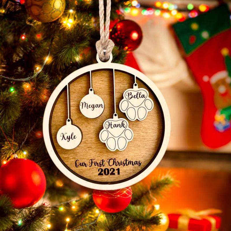 Custom Christmas Ornament Best Personalised Four Family and Pet Ornament Gift for Xmas