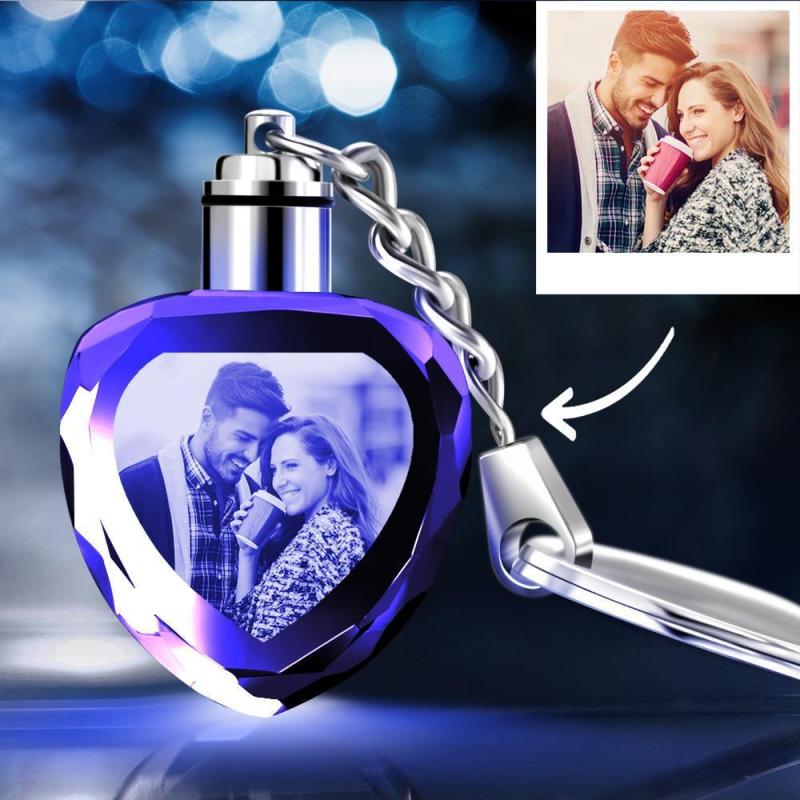 Custom Crystal Heart Shape Couple Photo Key Chain
