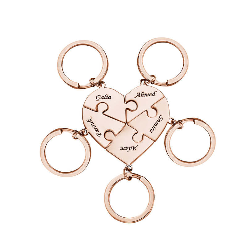 Custom Engraved Keychain Heart-shaped Puzzle Number of Options Creative Gift