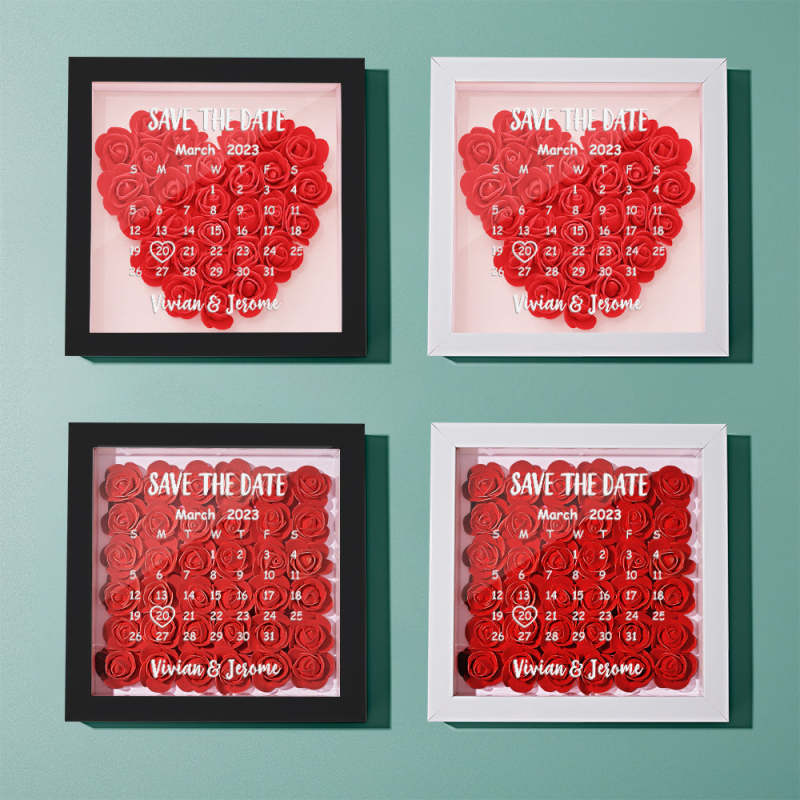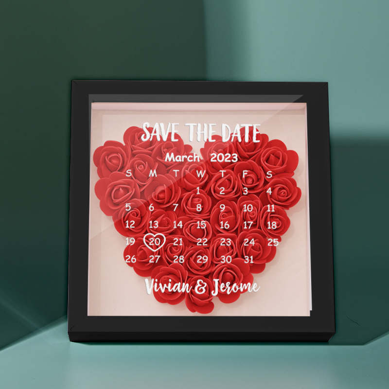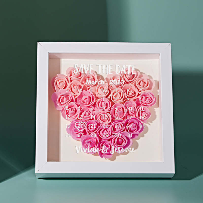 Custom Flower Shadow Box Personalized Calendar Flower Shadowbox Frame Gift