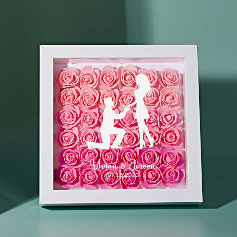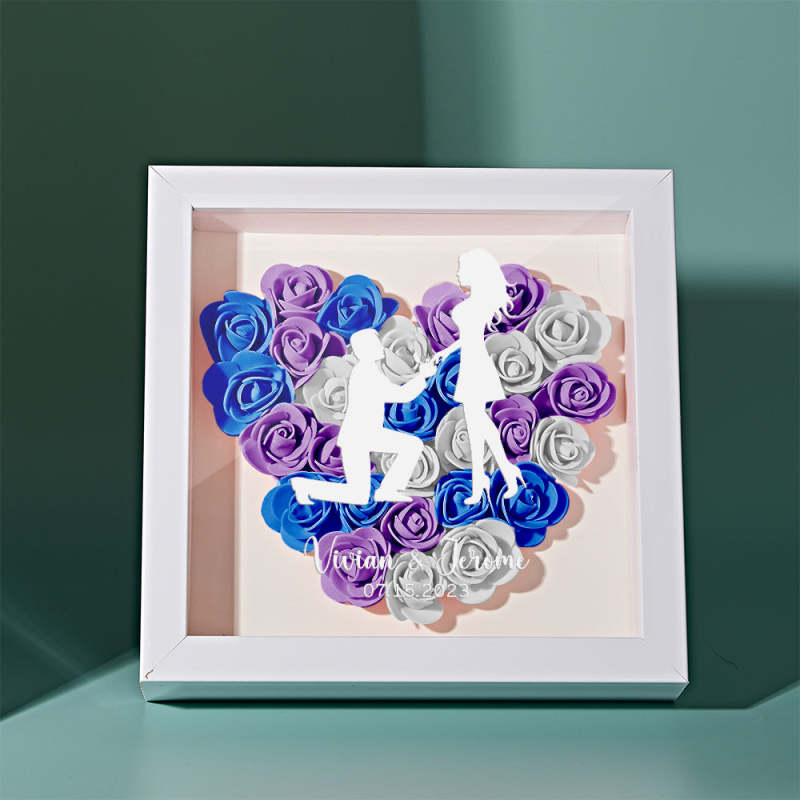 Custom Flower Shadow Box Personalized Name Flower Shadowbox Frame Gift for Couple