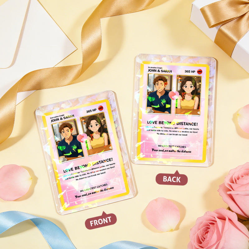 Custom Gift for Couples Photo and Text Card Personalized Anniversary Keepsake Card LOVE BEYOND DISTANCE Style Gift
