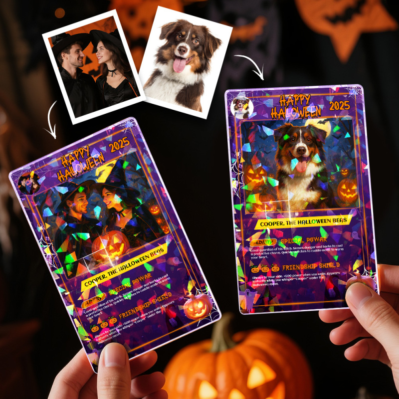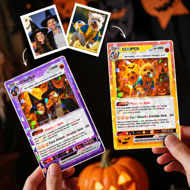 Custom Halloween & Christmas Game Card Personalized Cartoon Trading Card with Photo & Name, Unique Holiday Gift for Lover