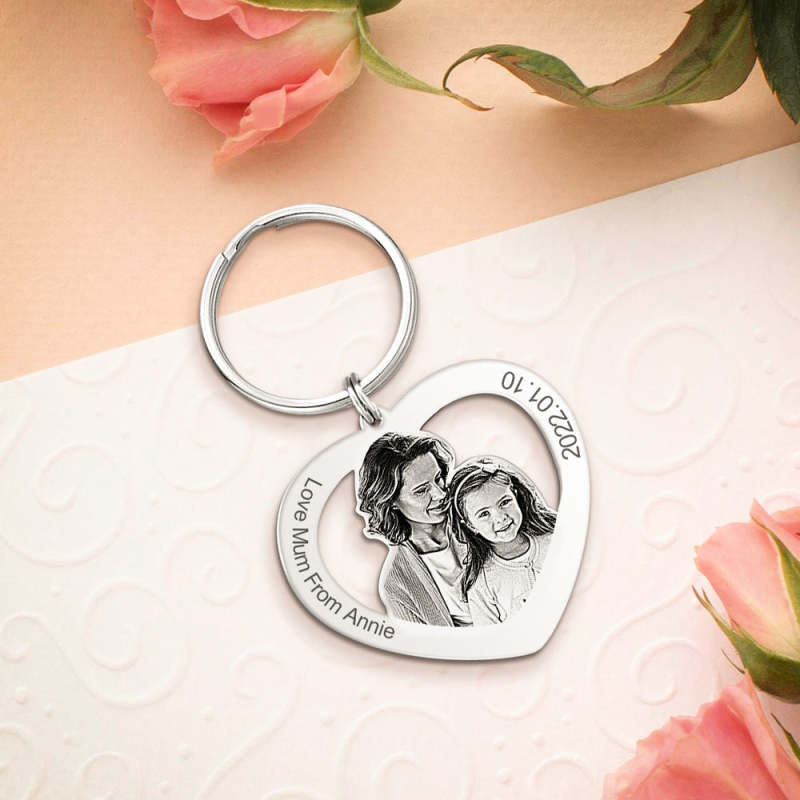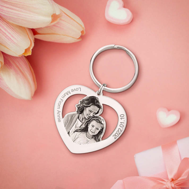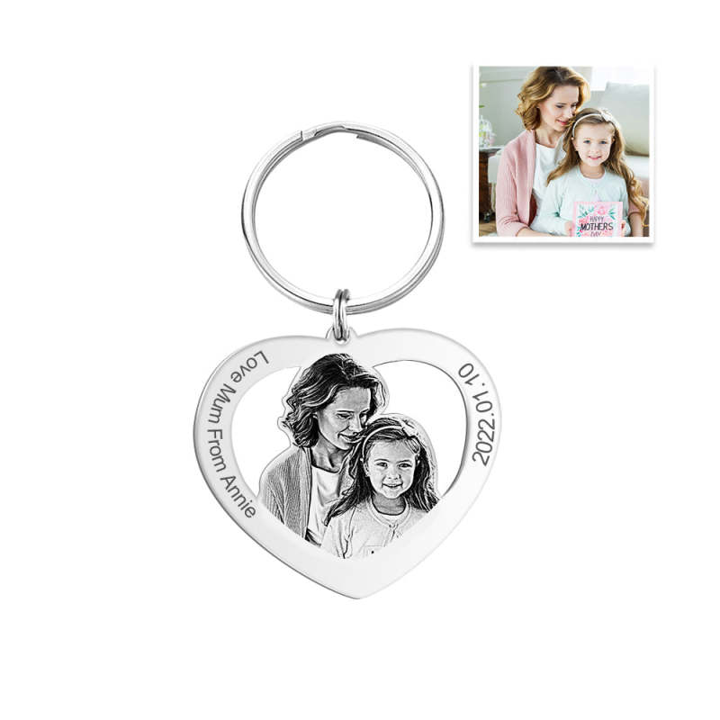 Custom Heart Keychain Personalised Engraving Keychain for Mum