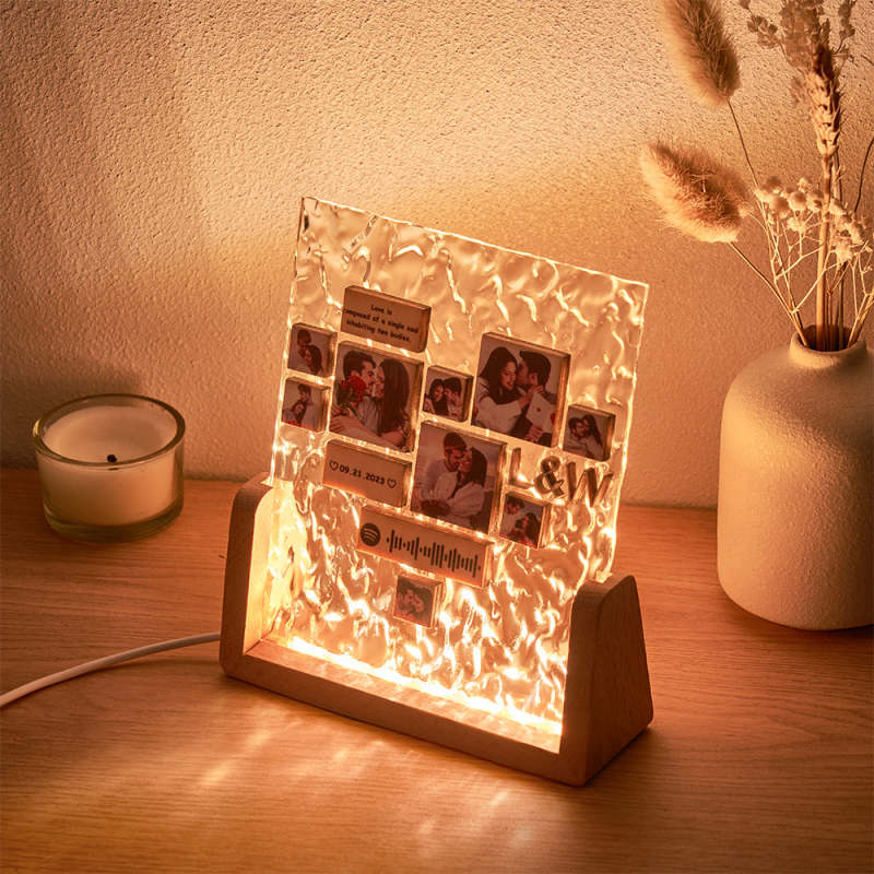 Custom Heart-Shaped Photo Frame Night Light Personalised Spotify Code Wooden Accessory Valentine's Day Gift for Couples