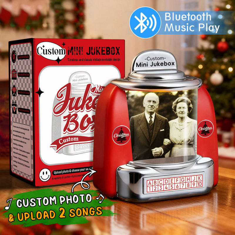 Custom Mini Jukebox Retro Speaker - Personalized Photo & 2 Songs Mini Player with Radio | Vintage Tabletop Home Decor Nostalgic Gift