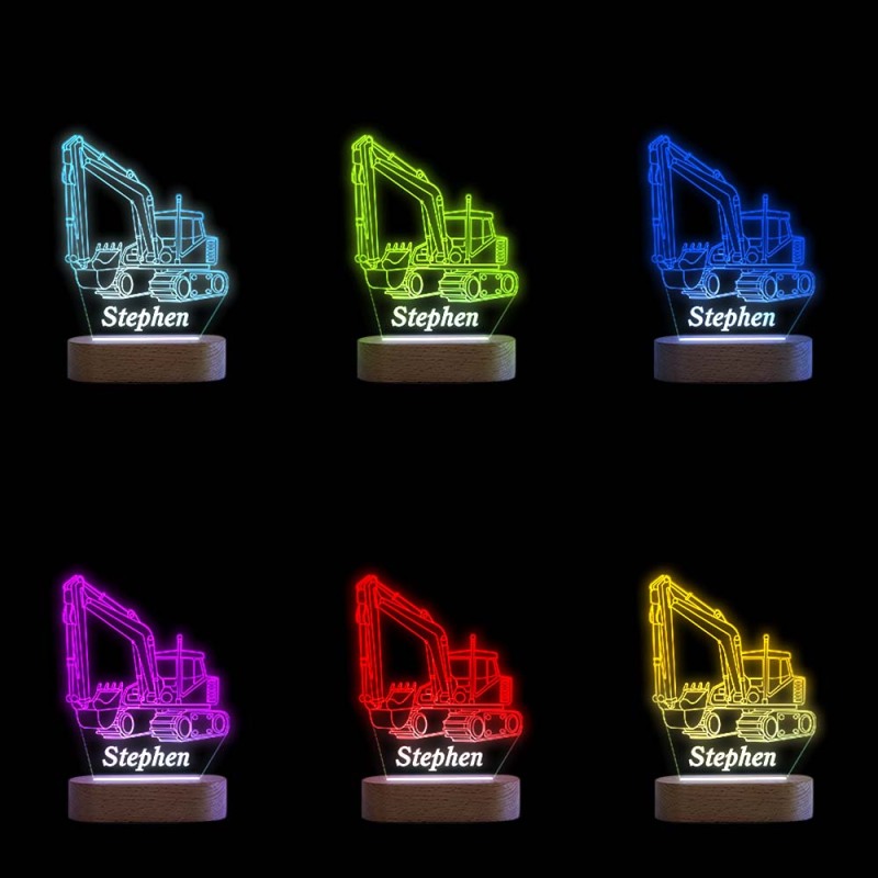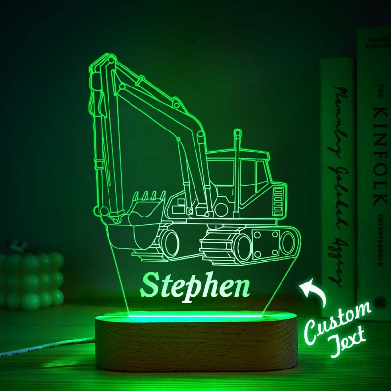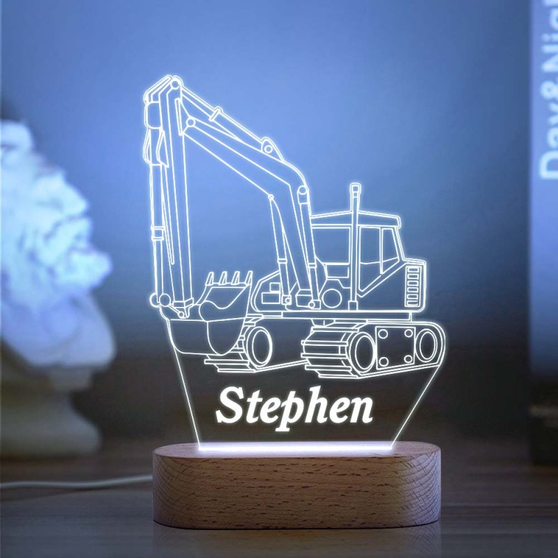 Custom Name Acrylic Night Light Personalized EXCAVATOR Desk Lamp Gift for Kids Adult