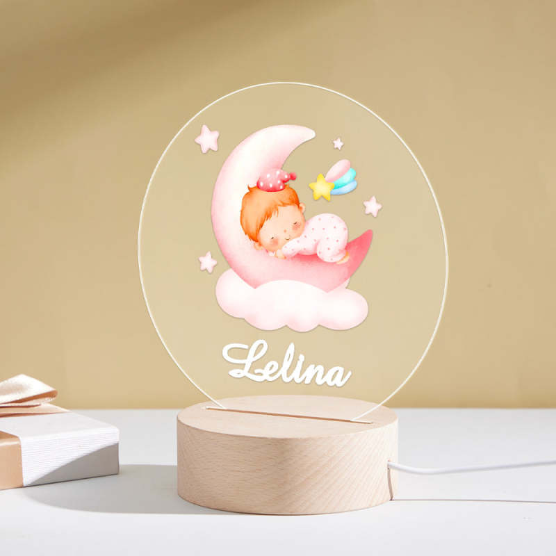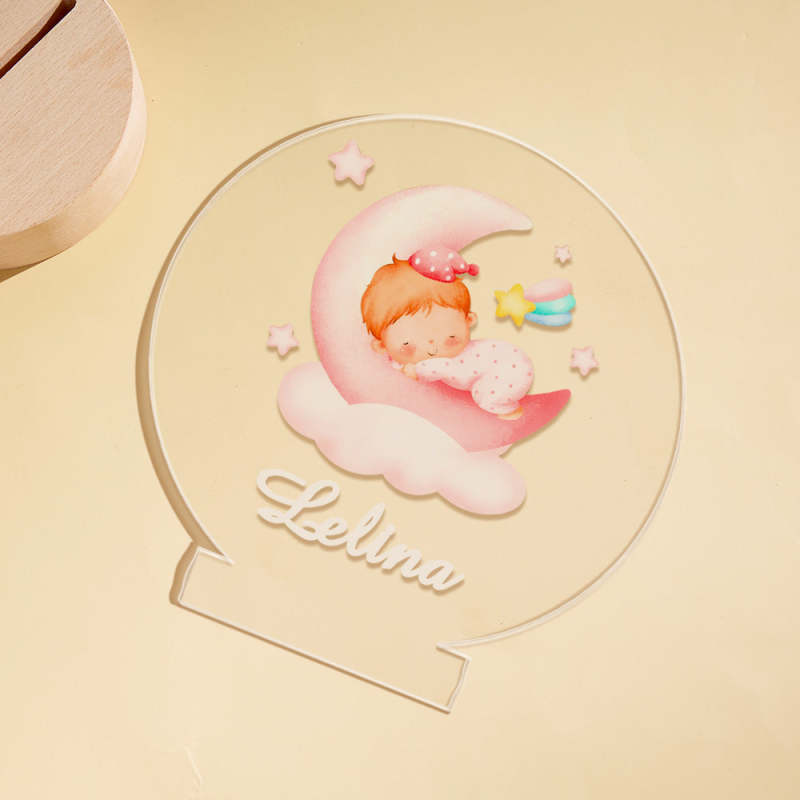 Custom Name Baby Bedroom Lamp Personalised Lovely Baby Sleeping On The Moon For Newborn Night Light baby Gift