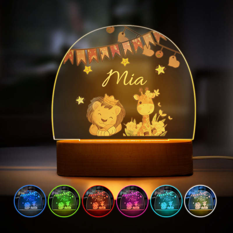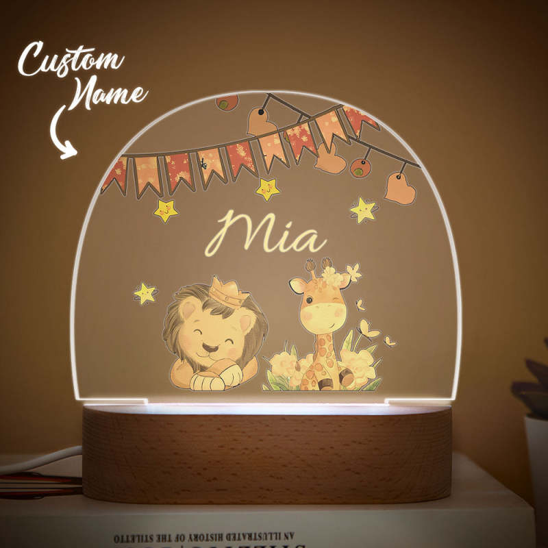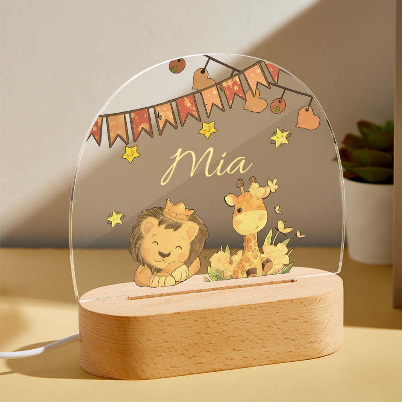 Custom Name King Lion And Giraffe Kids Bedside Lamp Personalised Kids Room Gift