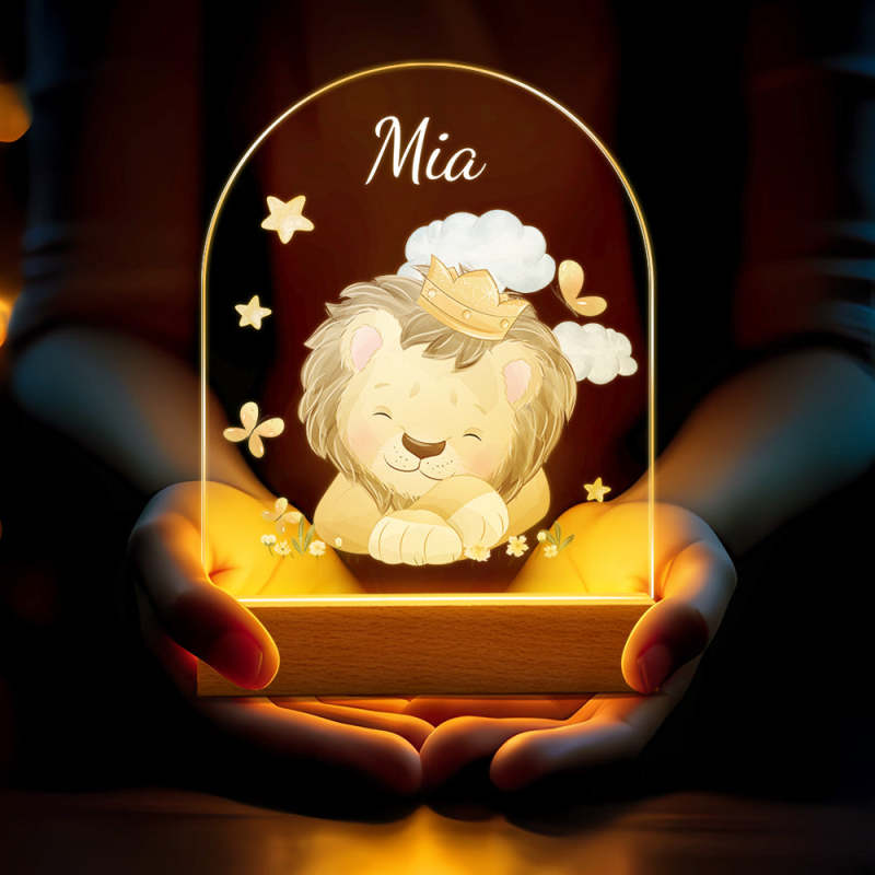 Custom Name Nursery King Lion Night Light Personalised Cloud Kids Bedside Lamp