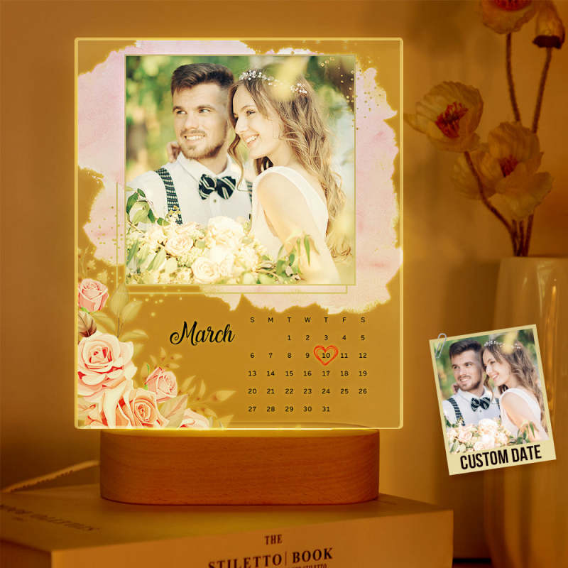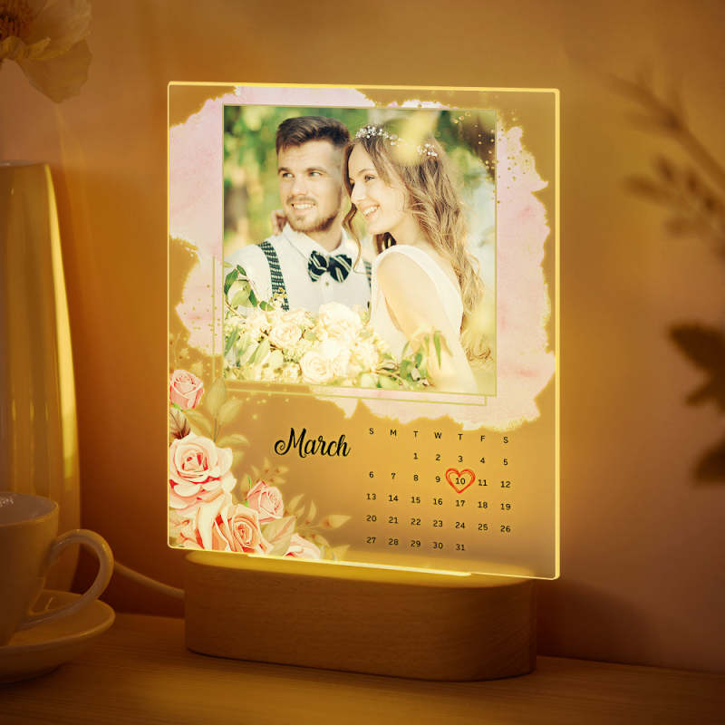 Custom Photo Acrylic Lamp Personalized Date Acrylic Plaque Picture Frame Anniversary Gifts for Lover