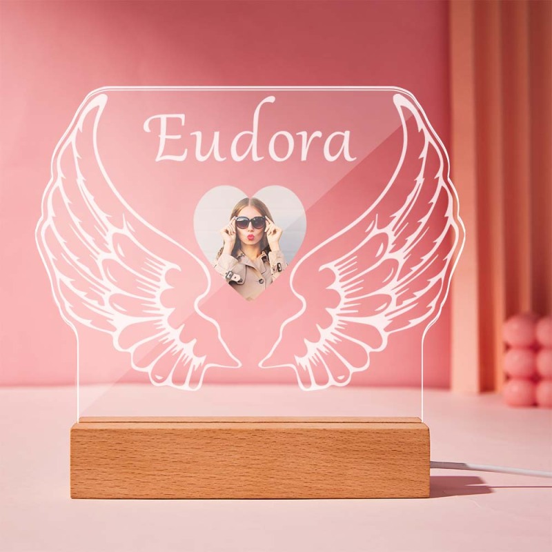 Custom Photo Acrylic Night Light with Name Angel Wings Gift for Couple