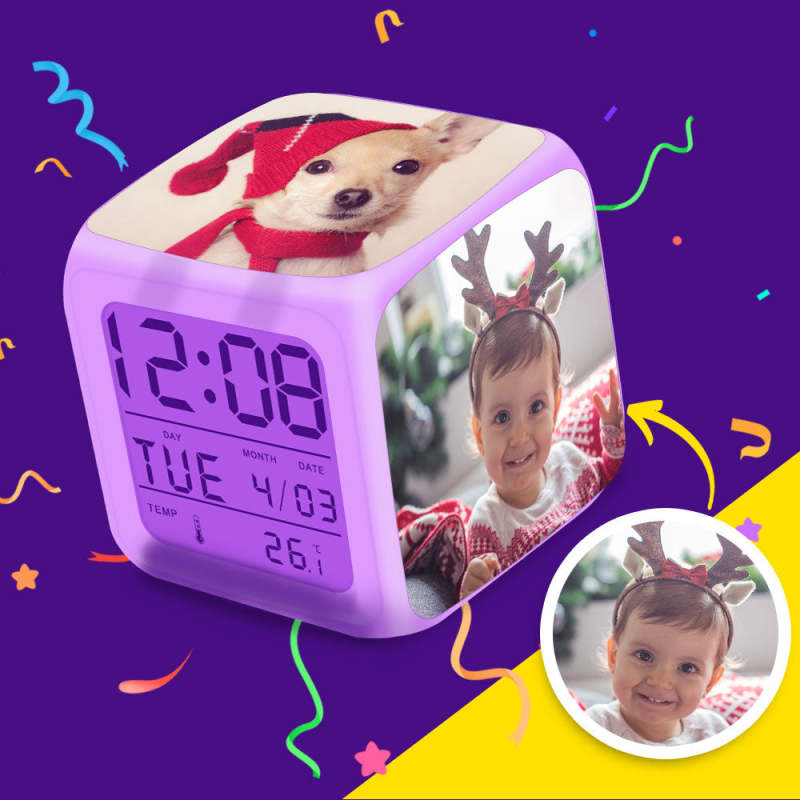 Custom Photo Alarm Clock Gifts Home Decoration Multi Photo Colorful Lights