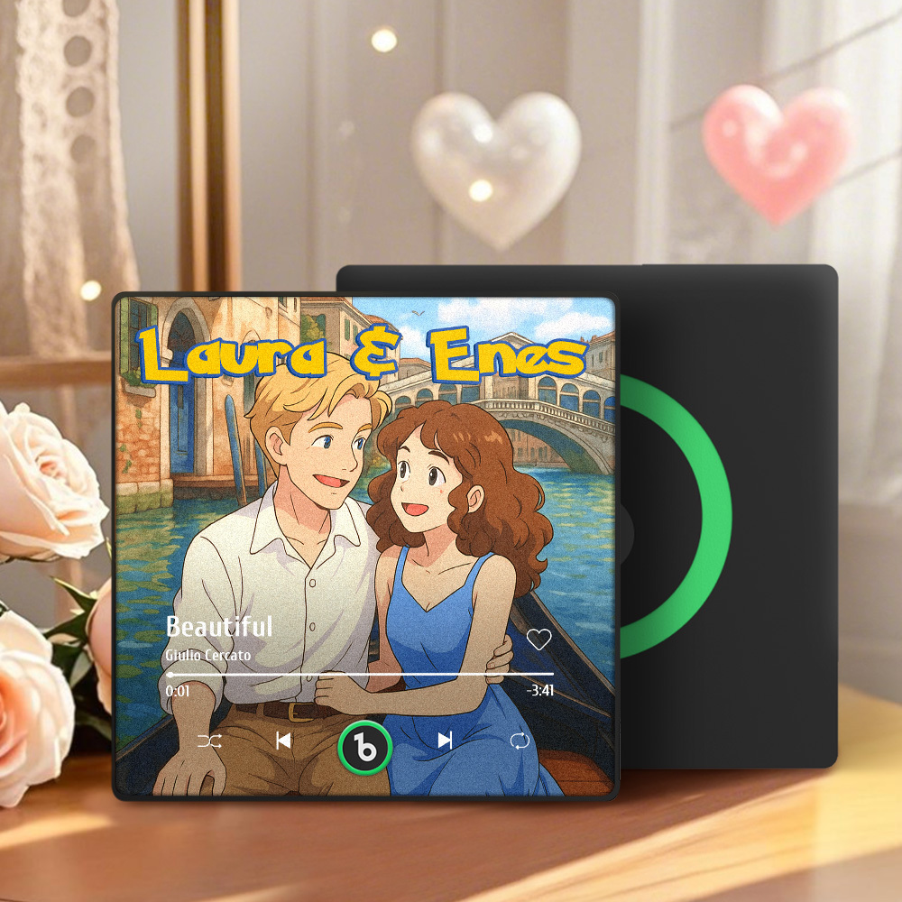 Custom Photo and Names Music Fridge Magnet Cartoon Style Personalized Photo Frame Gift for Couples