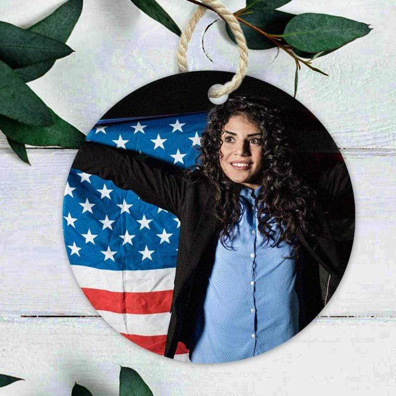 Custom Photo and Text Ornament for Independence Day Christmas Tree Decoration