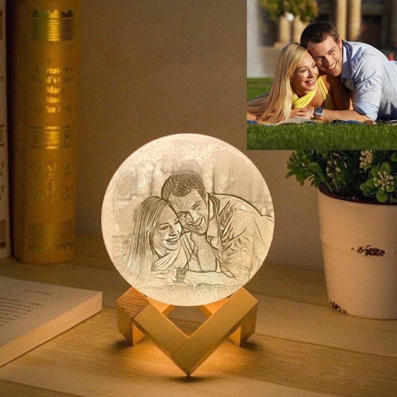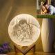 Custom Photo Engraved 3D Printing Moon Lamp, Creative Idea For Lover - Tap Three Colors