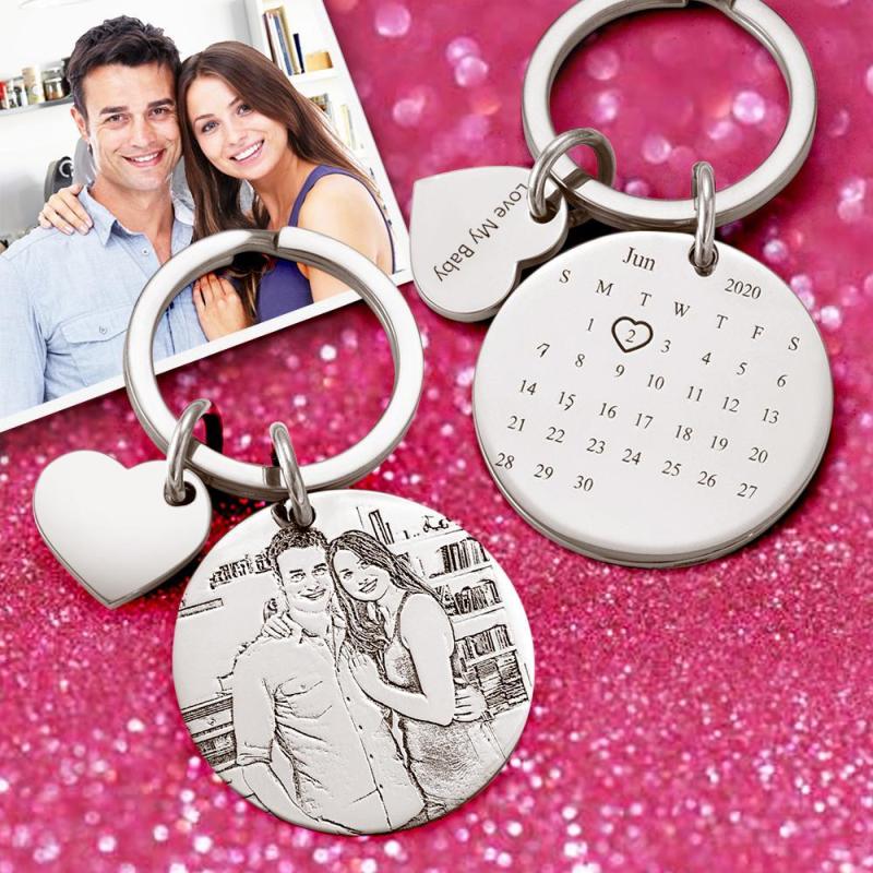 Anniversary Gifts Custom Photo Engraved Calendar Keyring