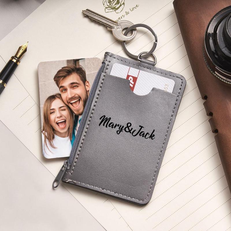 Custom Photo Engraved Keychain Leather Card Holder Creative Gifts