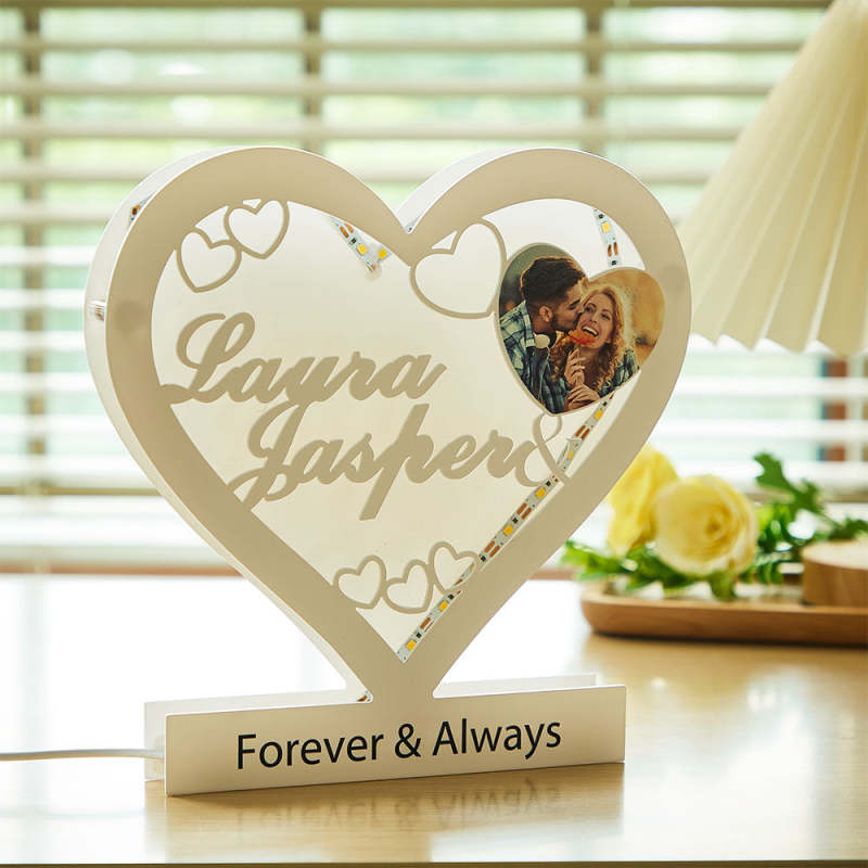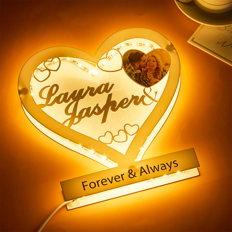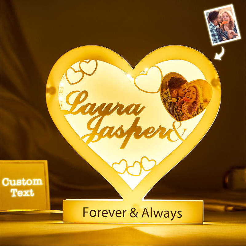Custom Photo Engraved Night Light Heart Acrylic Romantic Gifts for Couple