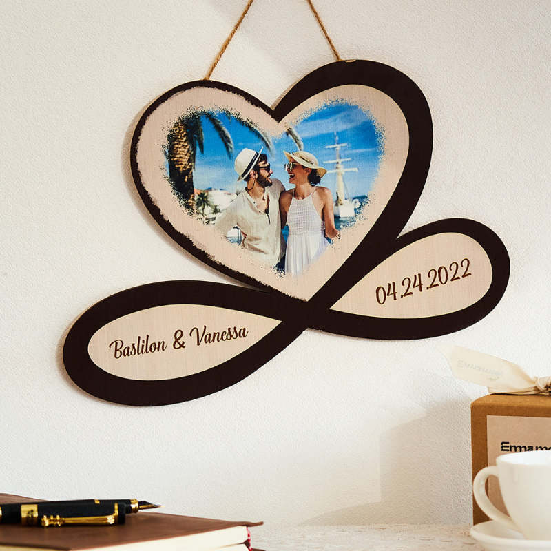 Custom Photo Engraved Pendant Infinity Heart Wooden Gifts