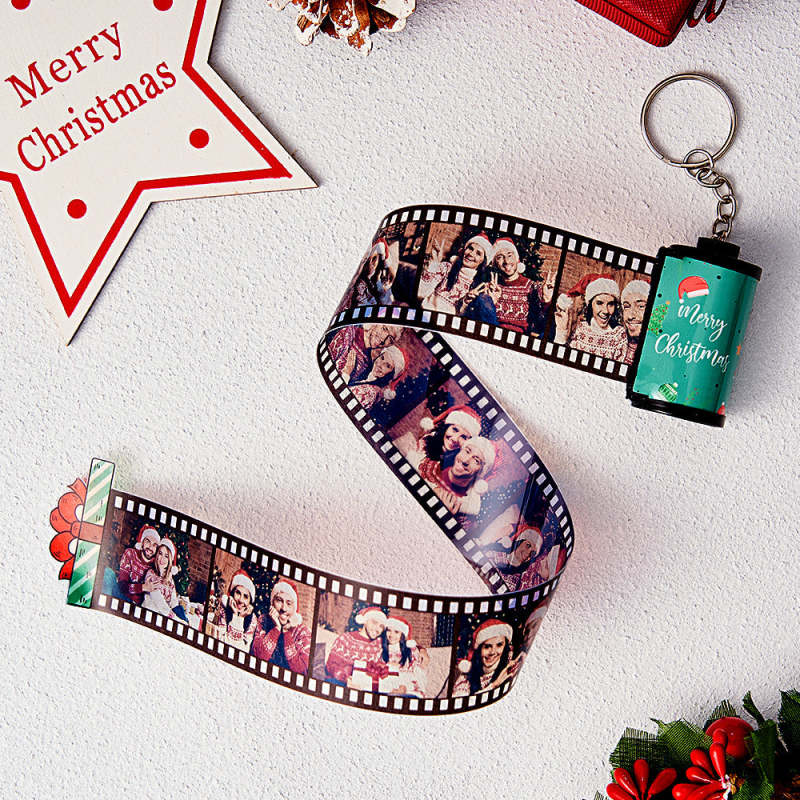 Custom Photo Film Roll Keychain Engraved Gift Box Pullable Camera Keychain Christmas Day Gift