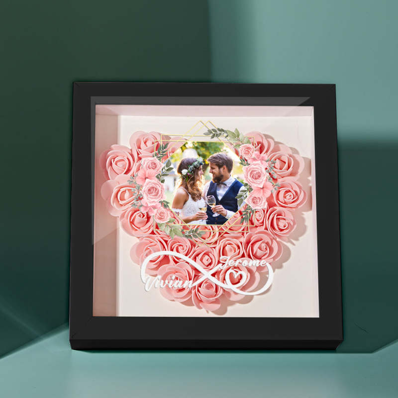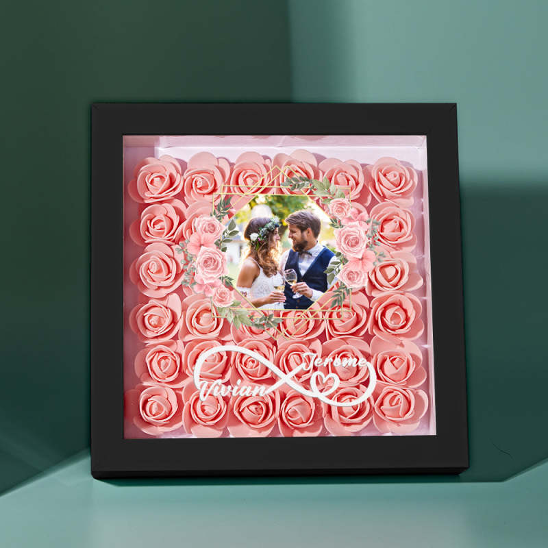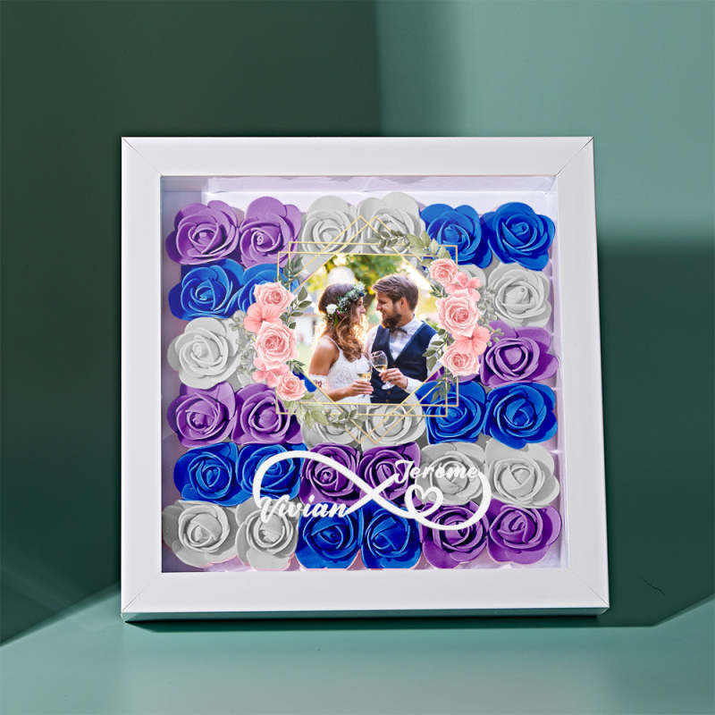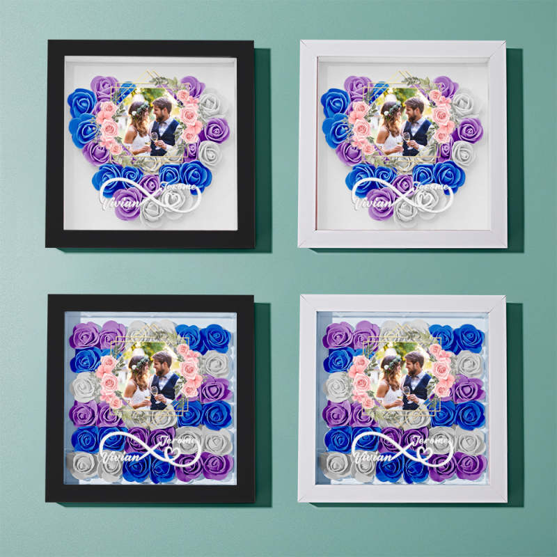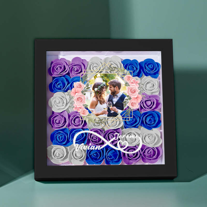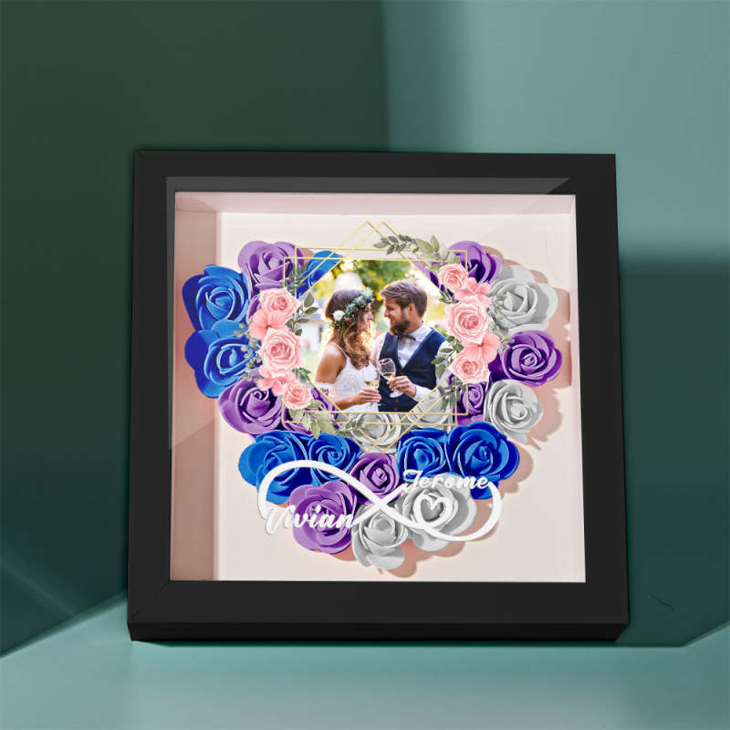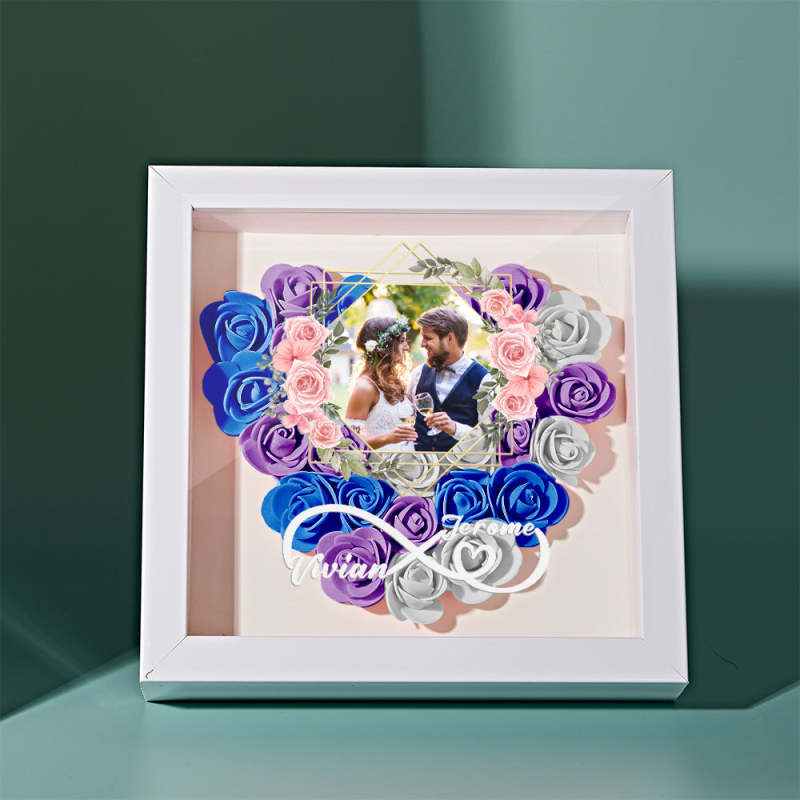 Custom Photo Flower Shadow Box Personalized Infinity Flower Shadowbox Frame Gift for Couple