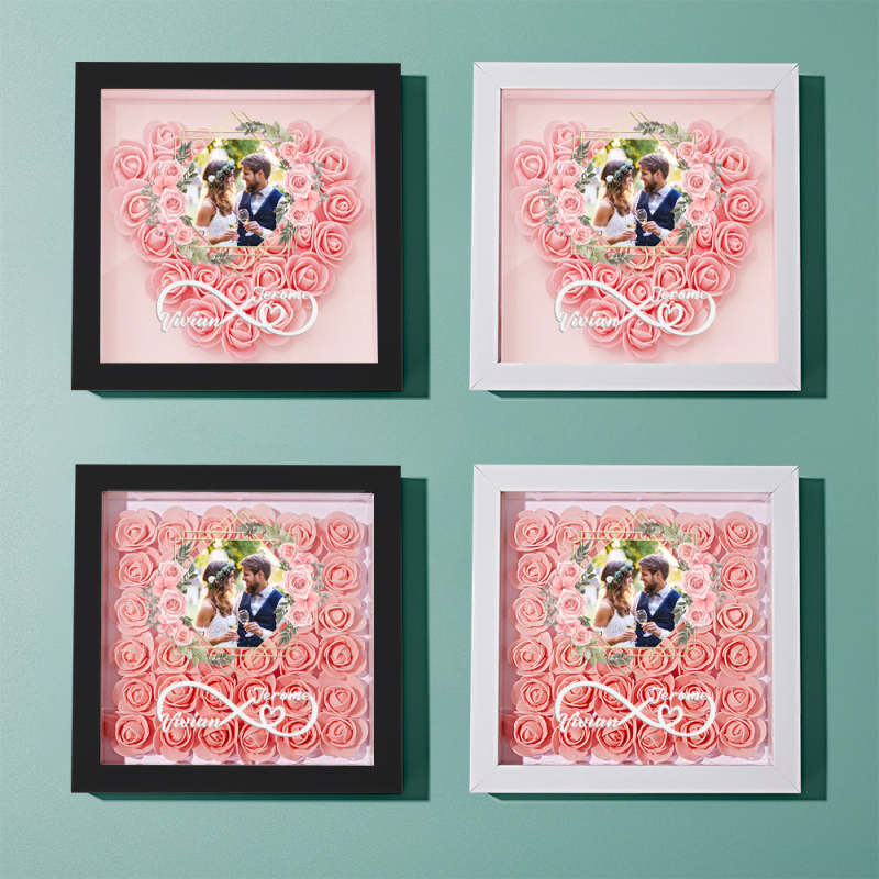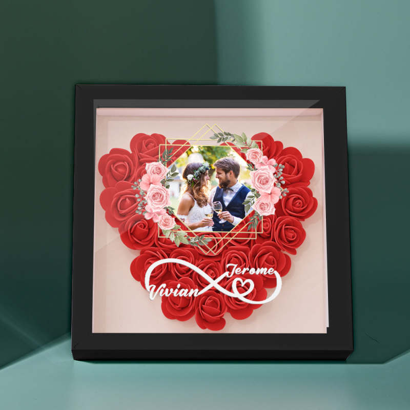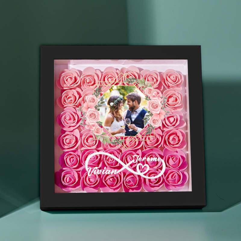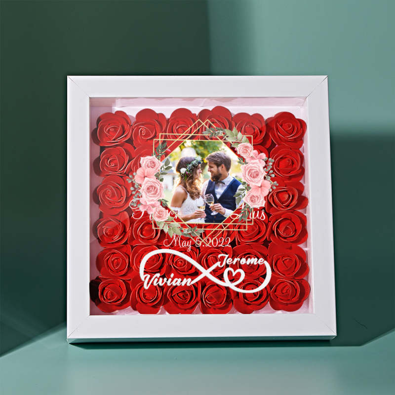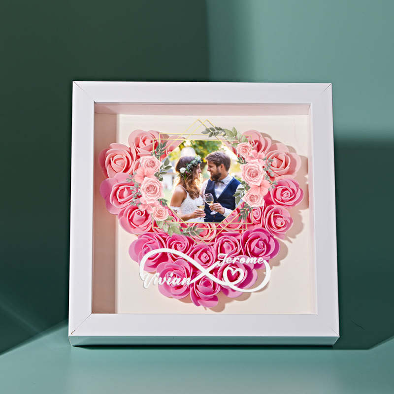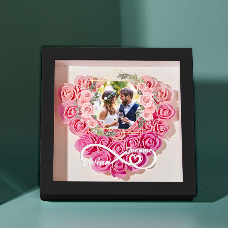 Custom Photo Flower Shadow Box Personalized Infinity Flower Shadowbox Frame Gift for Couple