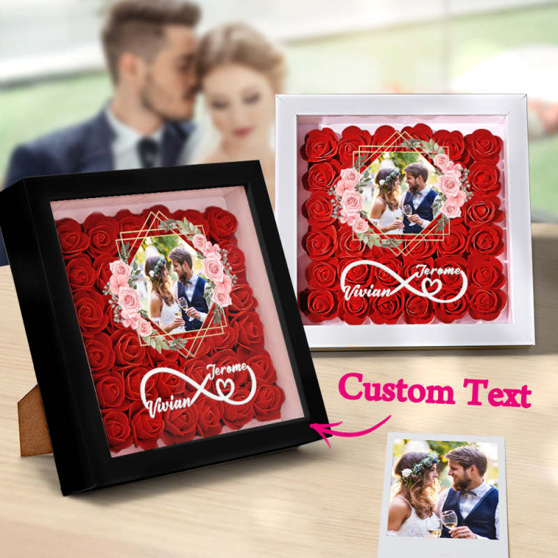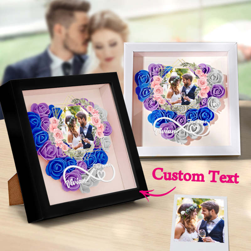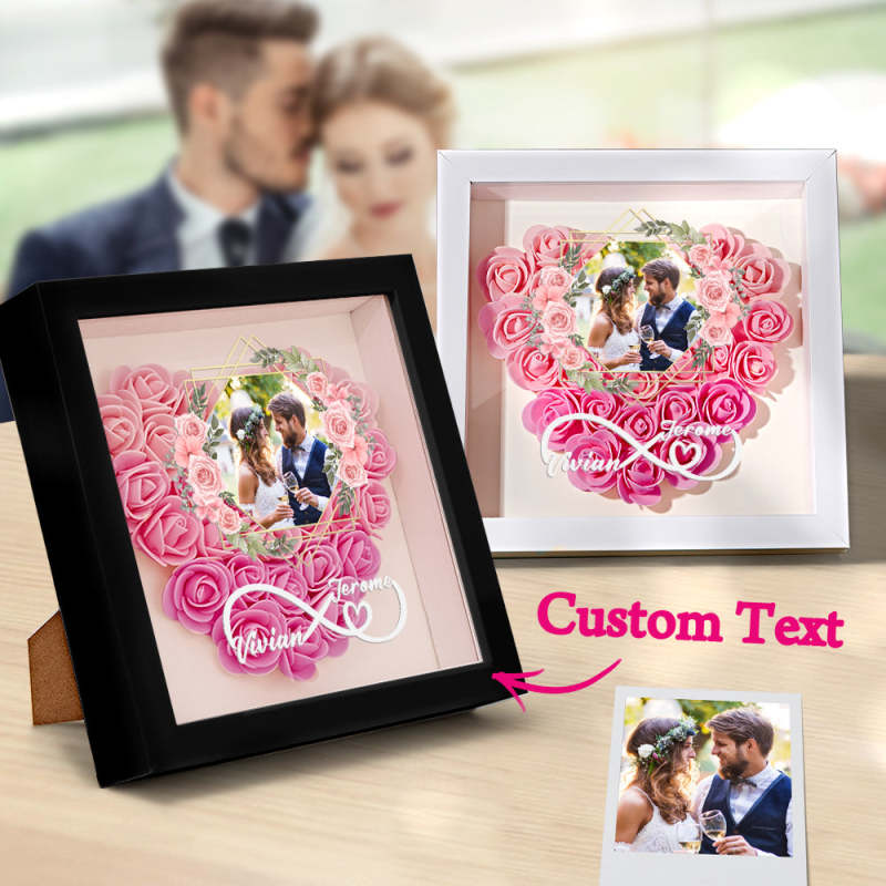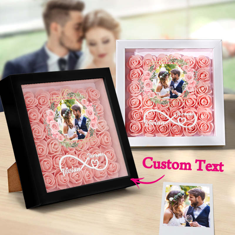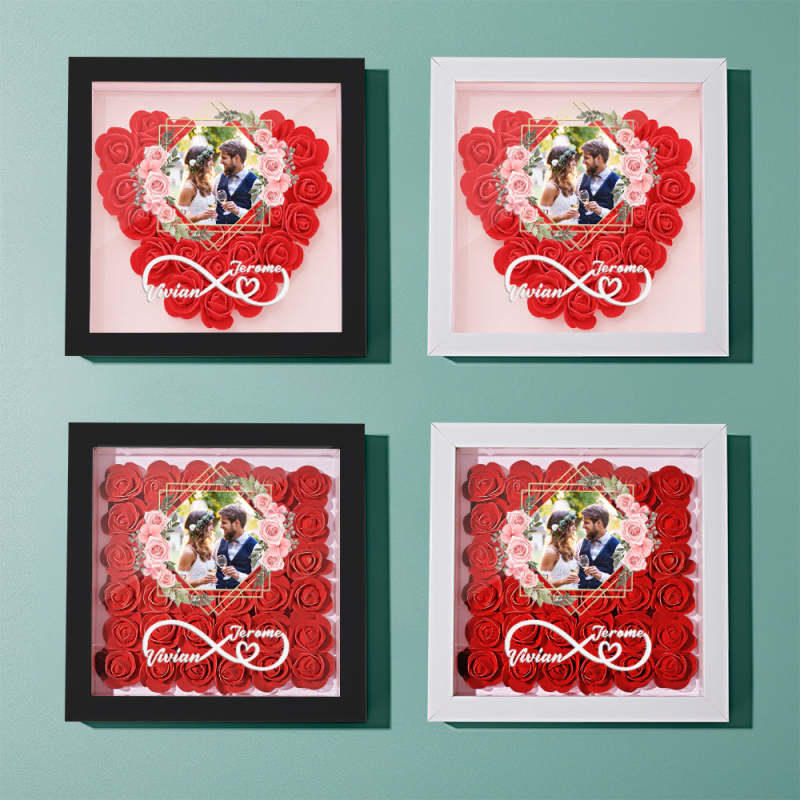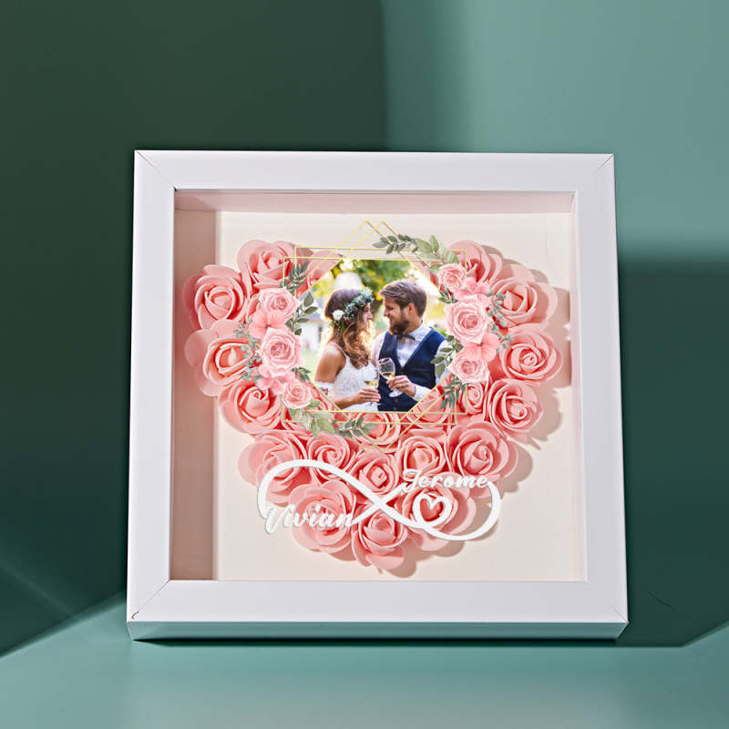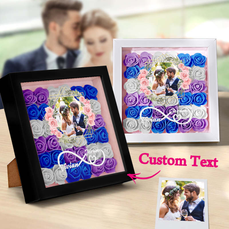 Custom Photo Flower Shadow Box Personalized Infinity Flower Shadowbox Frame Gift for Couple