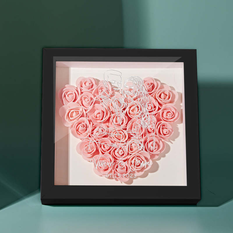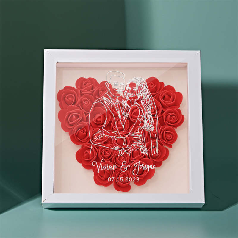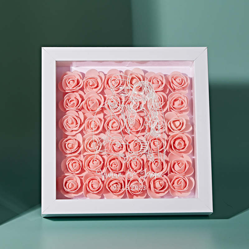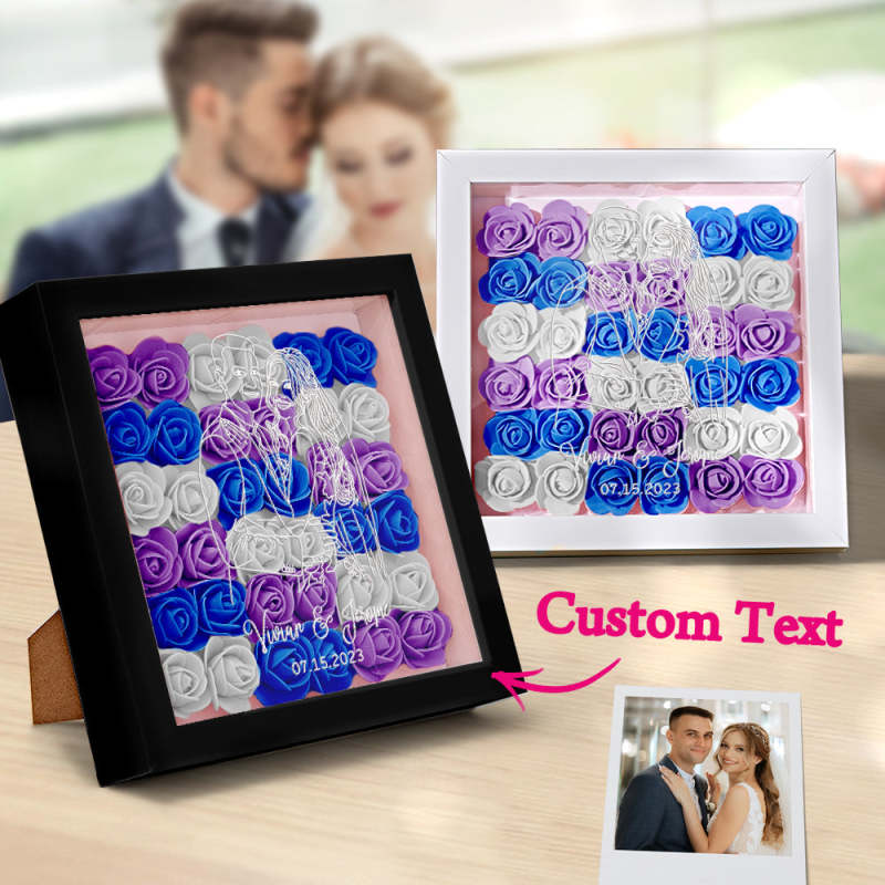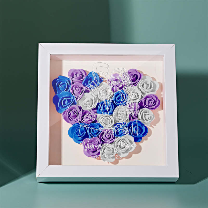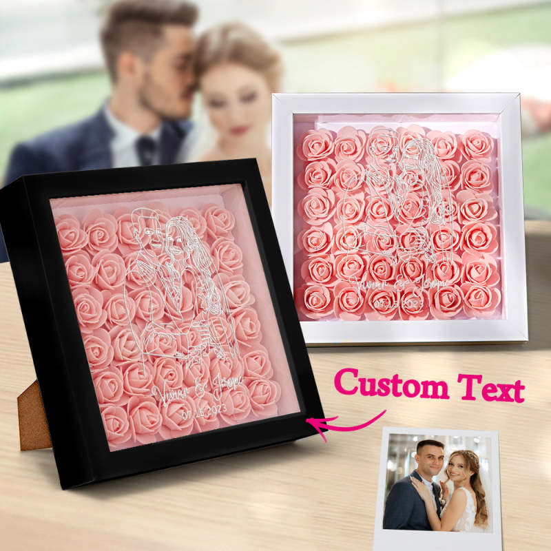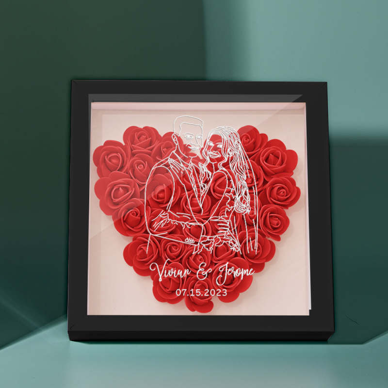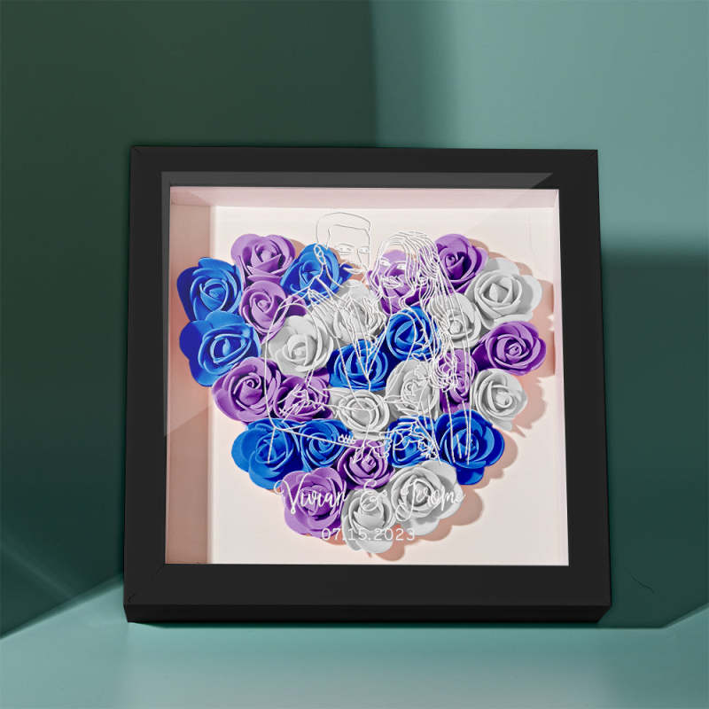 Custom Photo Flower Shadow Box Personalized Line Drawing Flower Shadowbox Frame Gift
