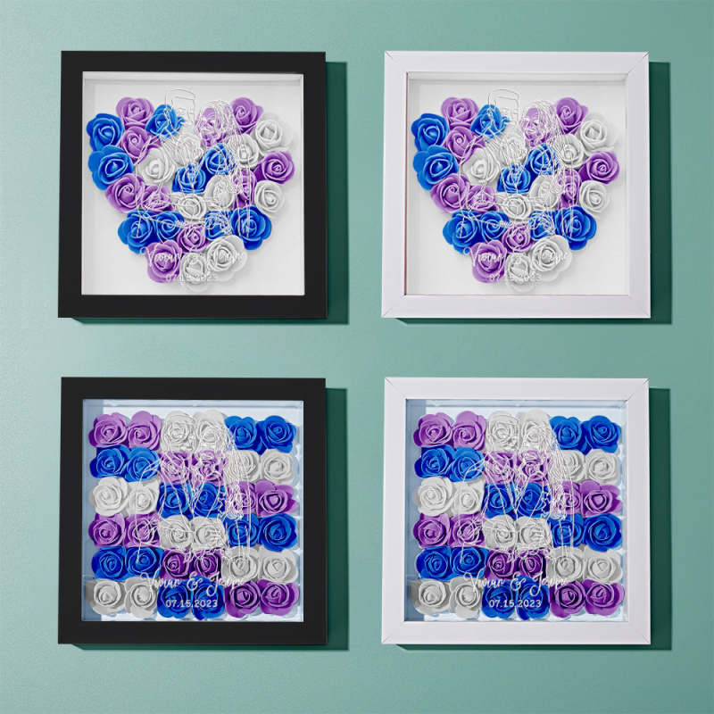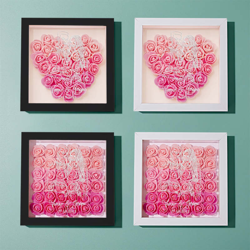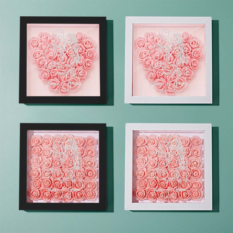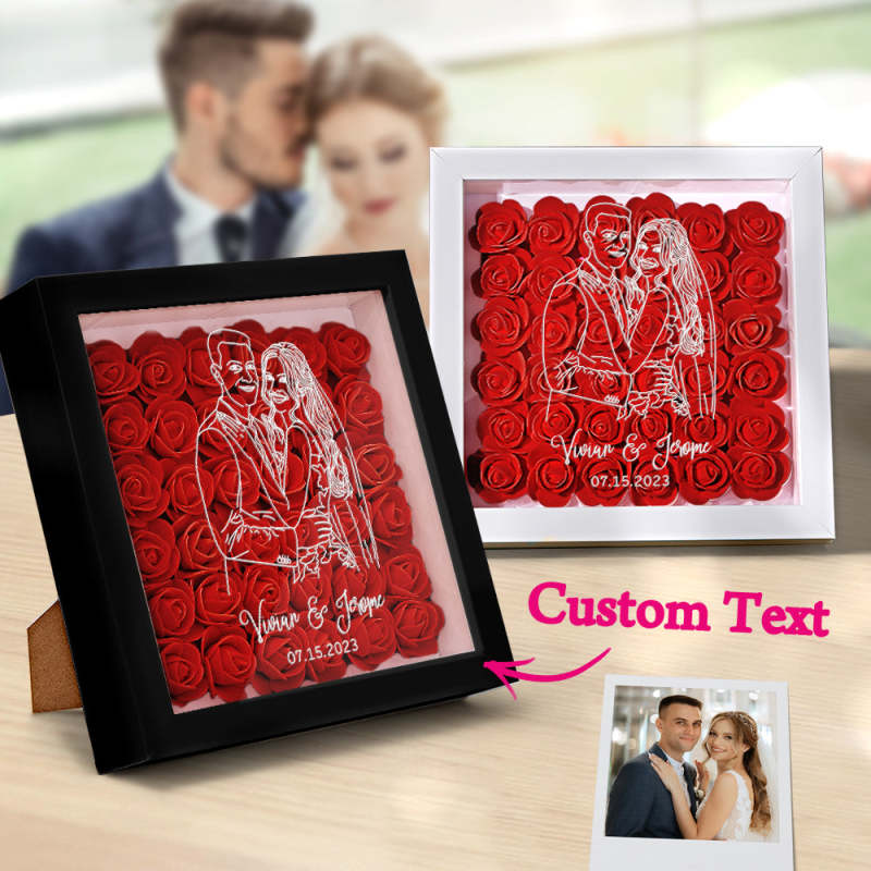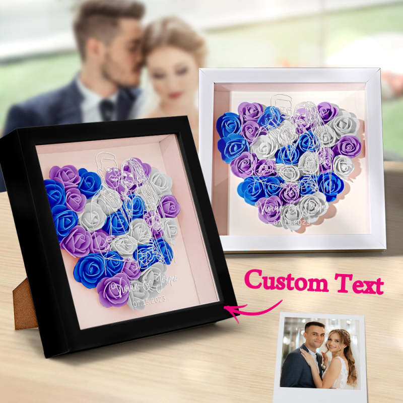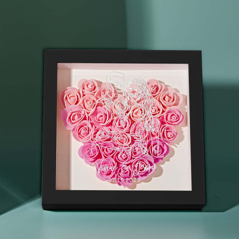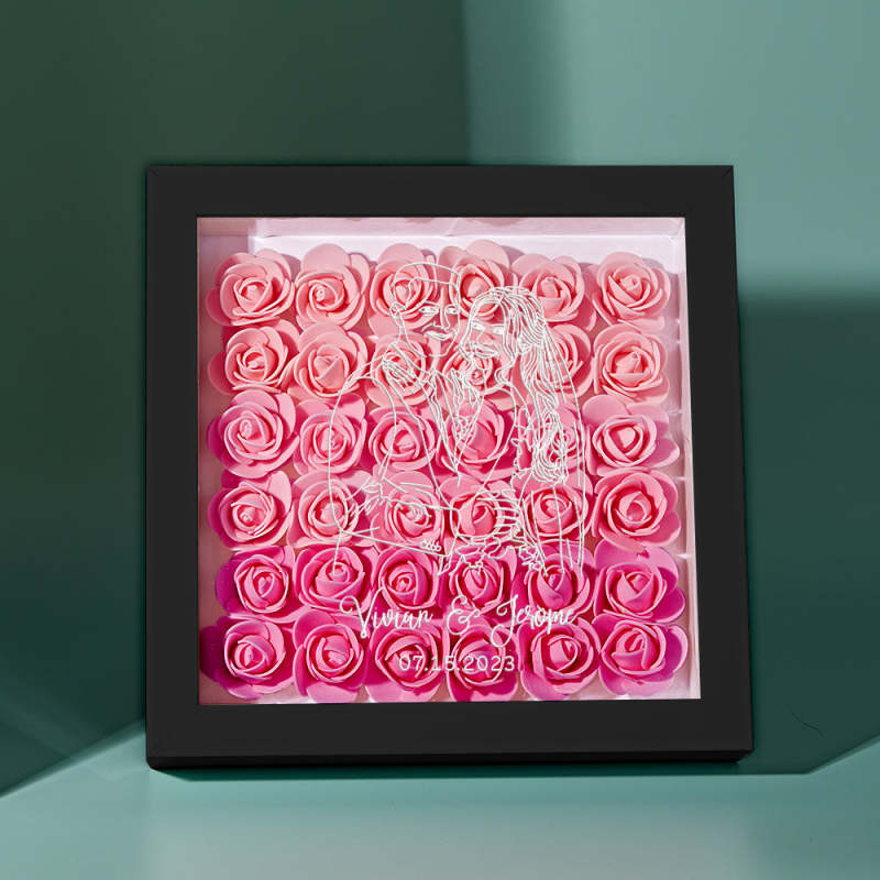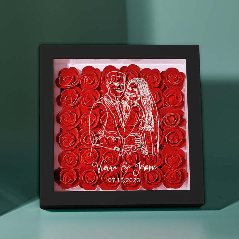Custom Photo Flower Shadow Box Personalized Line Drawing Flower Shadowbox Frame Gift