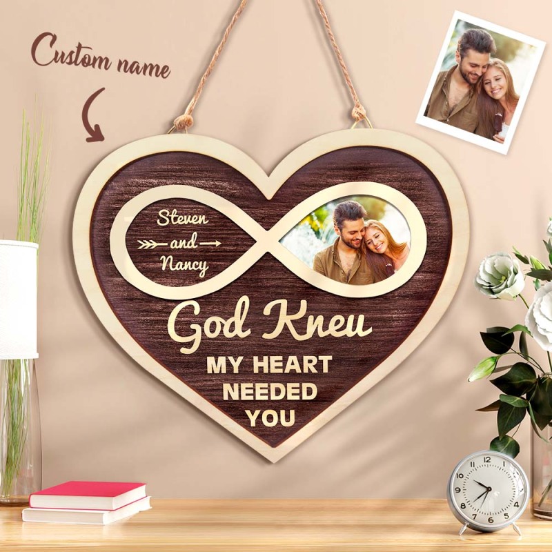 Custom Photo God Knew My Heart Needed You Personalized Infinity Love Name Shaped Wooden Ornament